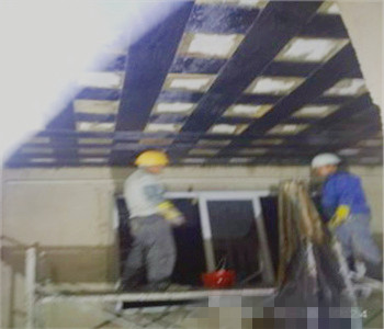 8.用JN-C3P粘贴纤维复合材料(如碳纤维)。粘贴时,应去除气泡,使布面光滑、饱满、均匀。织物宽度为80-150 mm,沿裂缝方向粘贴。植筋胶当使用单向纤维织物时,纤维的方向应与裂缝的方向垂直。